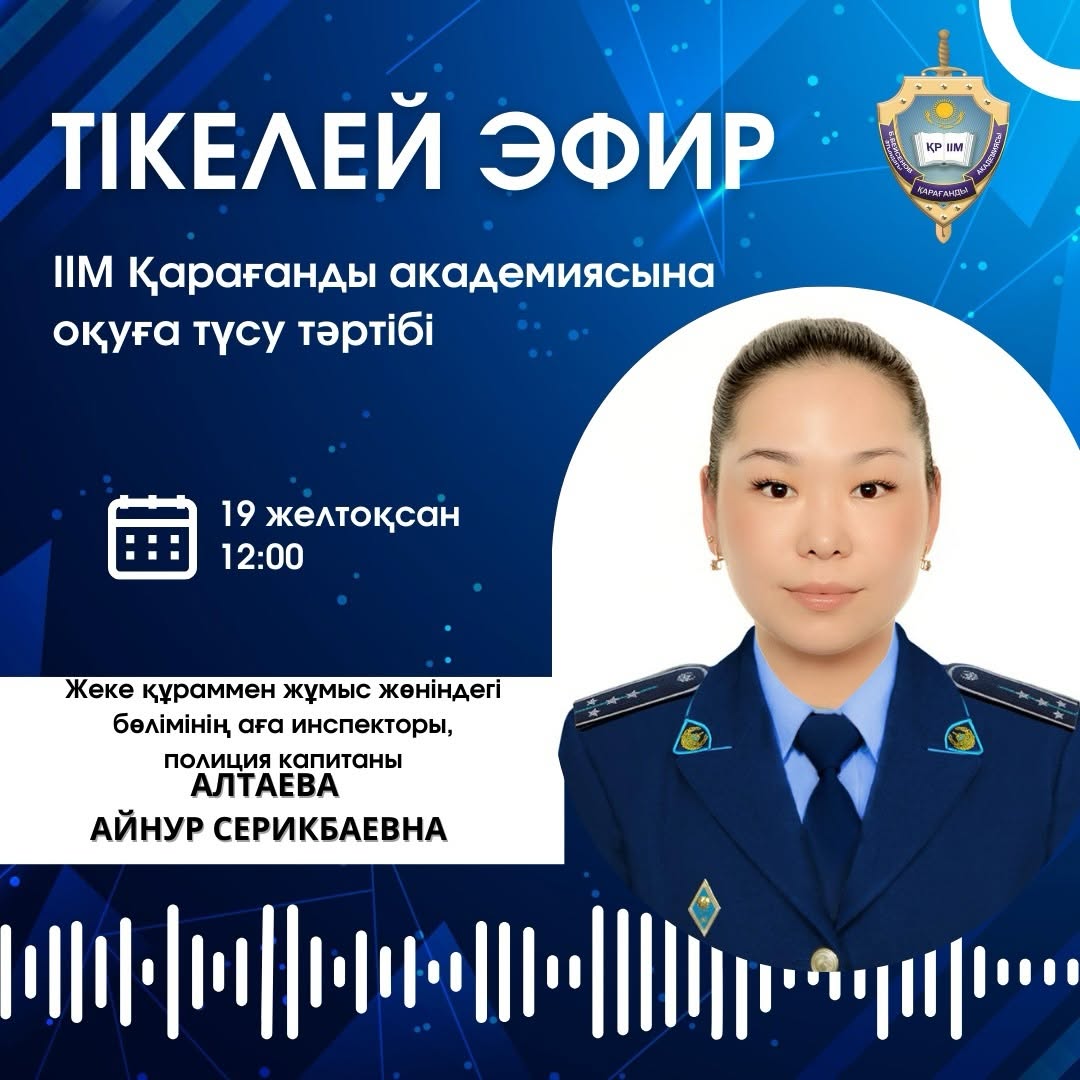 Прямой эфир о поступлении в Карагандинскую академию МВД РК имени Б. Бейсенова