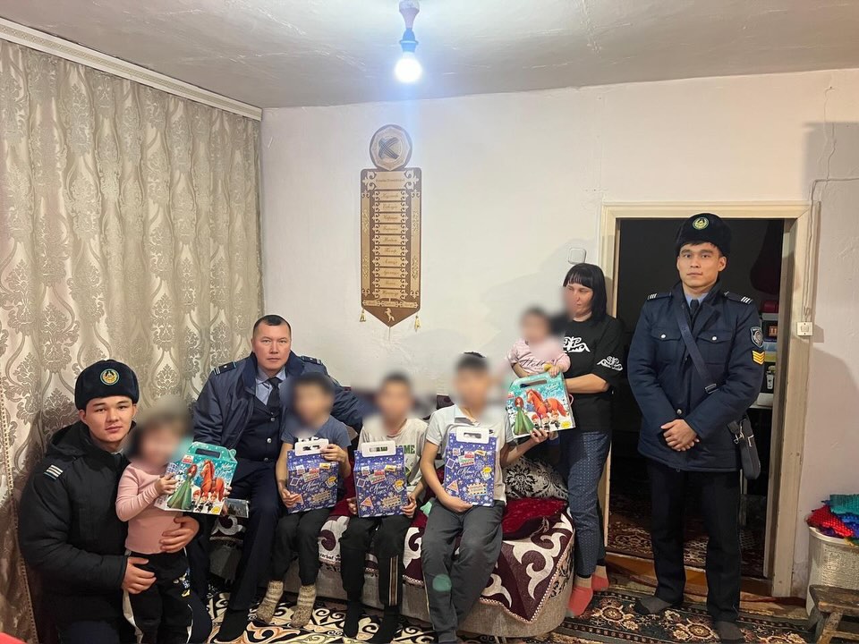 Сотрудники и курсанты Карагандинской академии МВД РК имени Б. Бейсенова, по запросу центра поддержки семей ОО «Talbesyk», посетили дома многодетных семей и поздравили их с Новым годом.